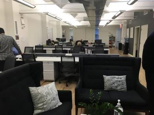 Nice, clean space furnished with roughly 45 desks. The area includes one large conference room, 3 smaller breakout rooms, a pantry area, and basketball hoop.