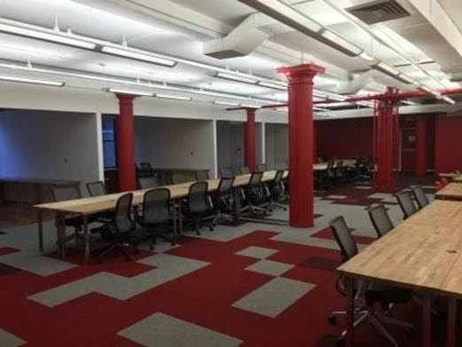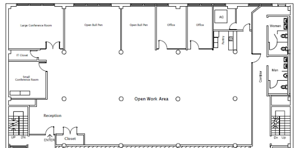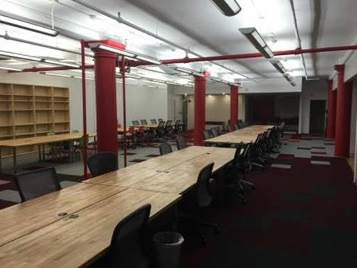 Huge open area well lit and includes six breakout areas and nooks. The open area has high open ceilings for versatile use of the space.