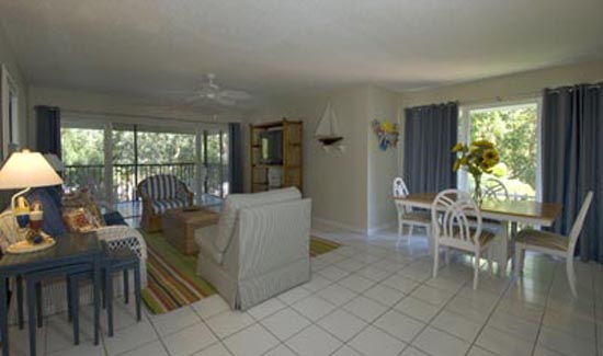 This beach inspired condo is fun and functional offering one bedroom one bathroom and a pull out couch over looking the golf course is equipped with WIFI Internet. Other amentities are private parking for car and cart, heated pool, and tennis court.